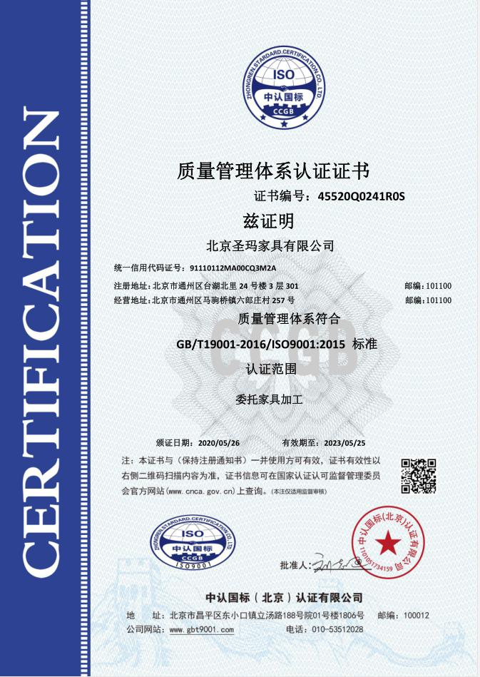 北京圣瑪家具有限公司是以設計研發、生產、銷售、服務為一體的專業化辦公家具制 造企業;主要經營辦公家具、校園家具、實驗室家具、酒店套房、全屋定制類等家具。 公司成立于 2017 年,生產基地位于天津市蘆臺經濟開發區華澳盛世家具有限公司院 內,占地面積約 10000 平米,擁有員工 100 人左右,其中高級技術人員達 15%以上。 公司采用了南興、先達系列等先進生產設備,建立專業流水線,具備先進的生產及加 工能力。公司設有專業的產品設計部、運營部、質檢部等,提供專業的 CAD 平面圖、立面 圖級效果設計圖紙。 使用優質的進口原材料及配件;嚴把進貨渠道,所用材料符合國家環保標準要求???式上依據人體工程學原理,追求多樣化的設計風格。按照 “ISO900/ISO14001 族標準” 的 要求,嚴格控制每一個環節。 并本著“以質量求發展,向管理要效益,顧客滿意為焦點,持續改進,共筑偉業”的 宗旨方